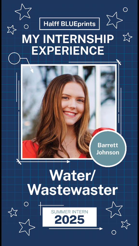 Hear from interns like Barrett Johnson who joined Halff’s Fayetteville office in the summer within the water and wastewater practice. Barrett supported active projects through hydraulic profiles, head loss calculations, pump sizing and selection, chemical treatment analysis and CAD drafting. She also participated in site visits and client meetings!